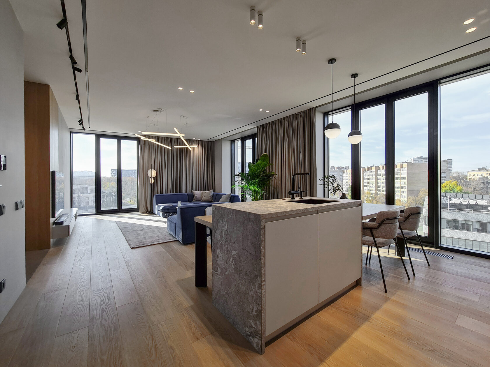 Большая, просторная квартира в стиле минимализм, располагается в новом центре притяжения Московской молодежи. При работе над проектов мы руководствовались запросом на минимальную загрузку помещения деталями интерьера с сохранением функциональности пространства. Шпонированные, эмалированные стеновые панели, кухня, шкафы, стеклянные перегородки - наш вклад в данный проект!